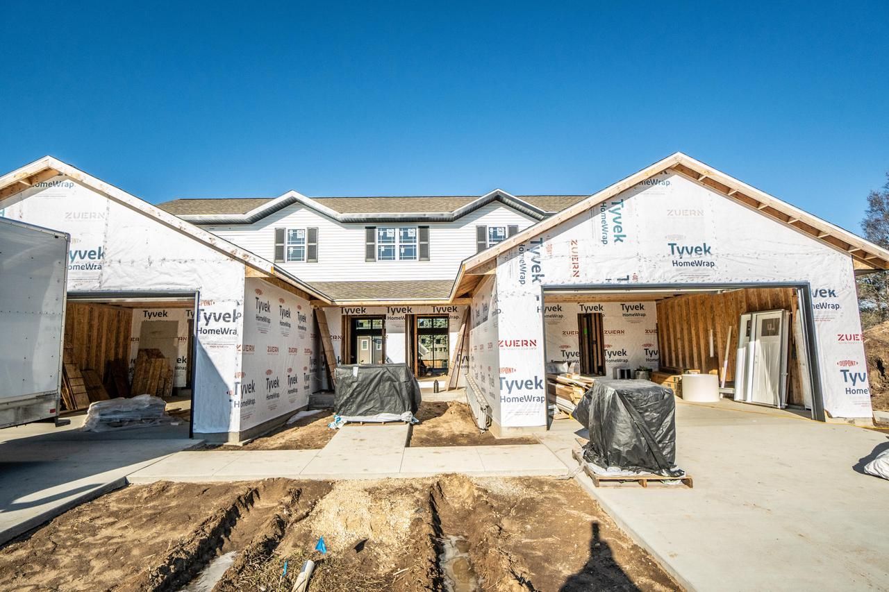 New construction 2 bedroom townhouse condo on West Bend's east side. Each unit features main floor laundry, main floor office, oversized kitchen, center islands w/snack bar, solid surface counters, pantry, arched entry, spacious LR with gas FP, wall of windows w/patio doors leading to private outdoor poured patio, 1st floor master suite w /9' vaulted ceilings, WIC, open spindle staircase to loft, full bath, and 2nd bedroom upstairs. Full basement with 3rd bath plumbed. Low association fees. Quality thru out. 11 total buildings when complete with 22 units. In process of being built, estimated completion late Spring 2026. Call today!