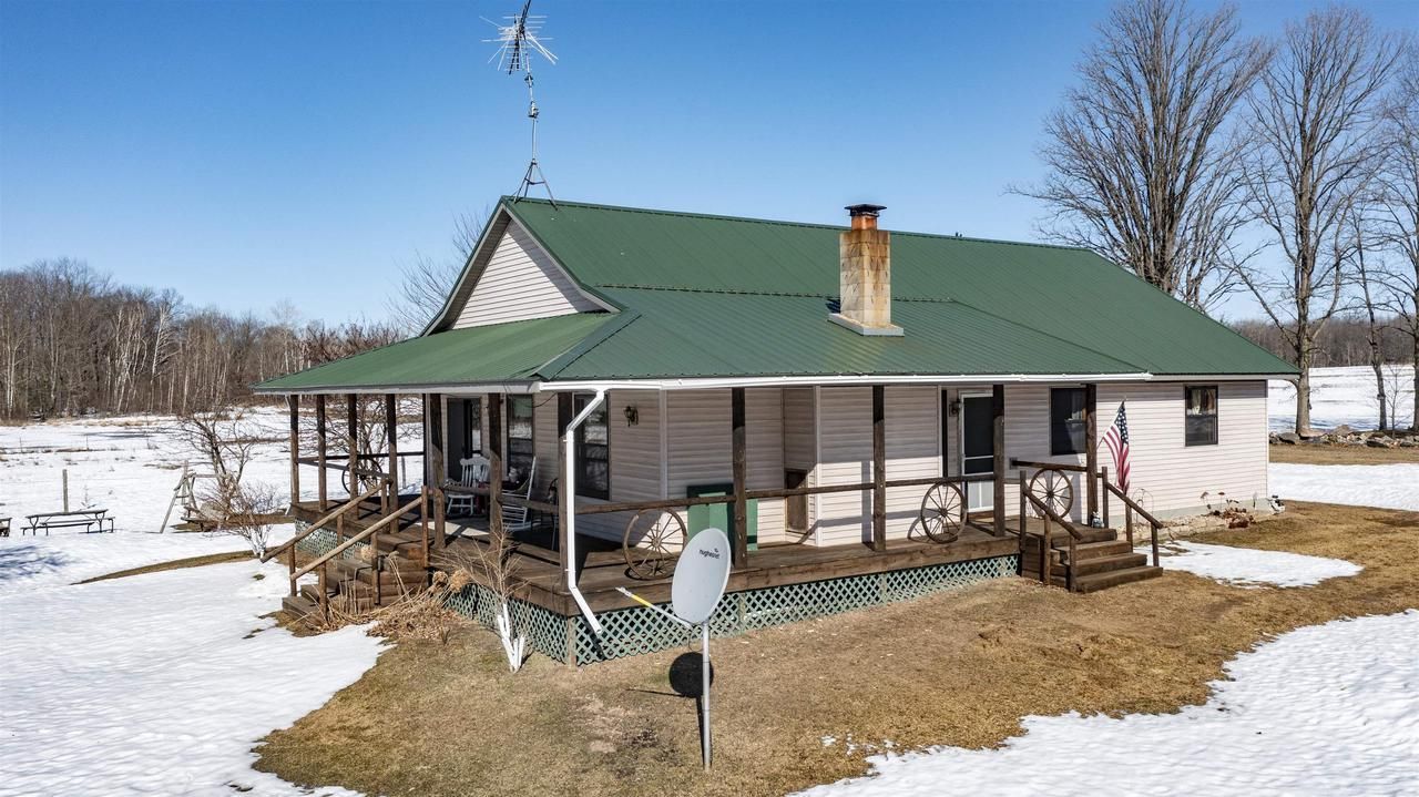 Come explore this beautiful property located on dead-end road and 20 acres of privacy or take a seat on the deck that wraps around the home for all the best views of the open field and wooded background. Additionally, there is a 30x50 barn with two levels accessible, a 15x28 shed, some fencing already started, and seller planted over 200 trees. Going inside, welcomed by a stone wood burning fireplace complete with space to keep the woodpile fully stocked. This open concept living / kitchen/ dining area makes it perfect for entertaining, family gatherings or even deer camp. Down the hall you will find the primary bedroom complete with private bath and walk in closet, an additional bedroom, full bath and laundry. Stay all year, call it a cabin, or start a hobby farm, the options are endless