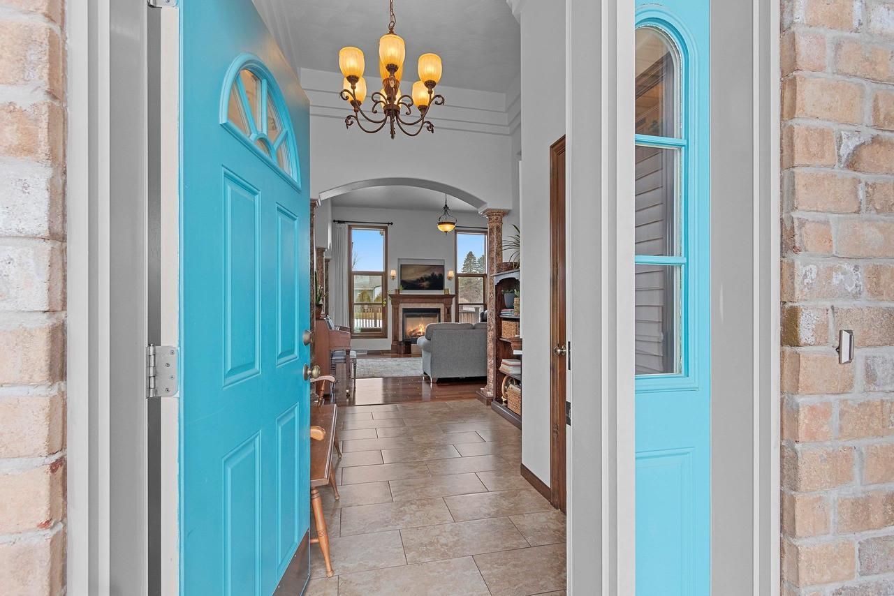 Gardens, space, & a full acre set the tone for this property. Raised beds of strawberries return each spring, joined by raspberries, honeyberries, and apple trees that define the outdoor space. Inside, the living room has 12? ceilings & floor-to-ceiling windows in the living & dining spaces, flowing into the kitchen w/ staggered maple cabinetry, under-cabinet lighting, and a large pantry. Teak flooring, arched openings, and built-in niches add warmth and detail throughout. The primary suite features a walk-in closet, tiled shower, and ceiling detail. The lower level includes a full wood bar with built-in fridge and sink plus additional living space. A heated, deep 3-stall garage and 12x20 shed complete the setting. Offers due 12PM 3/30; reviewed after 4PM. No closing before 5/21.