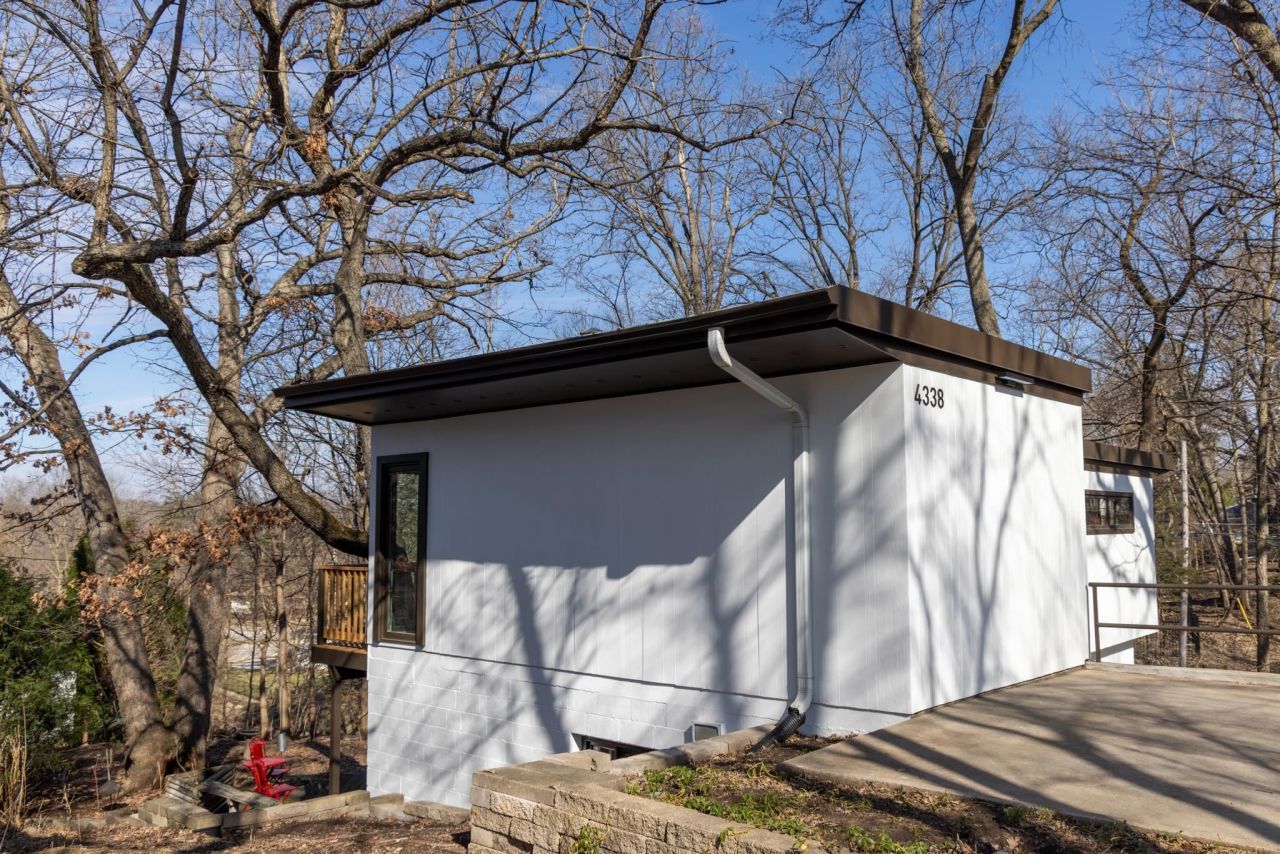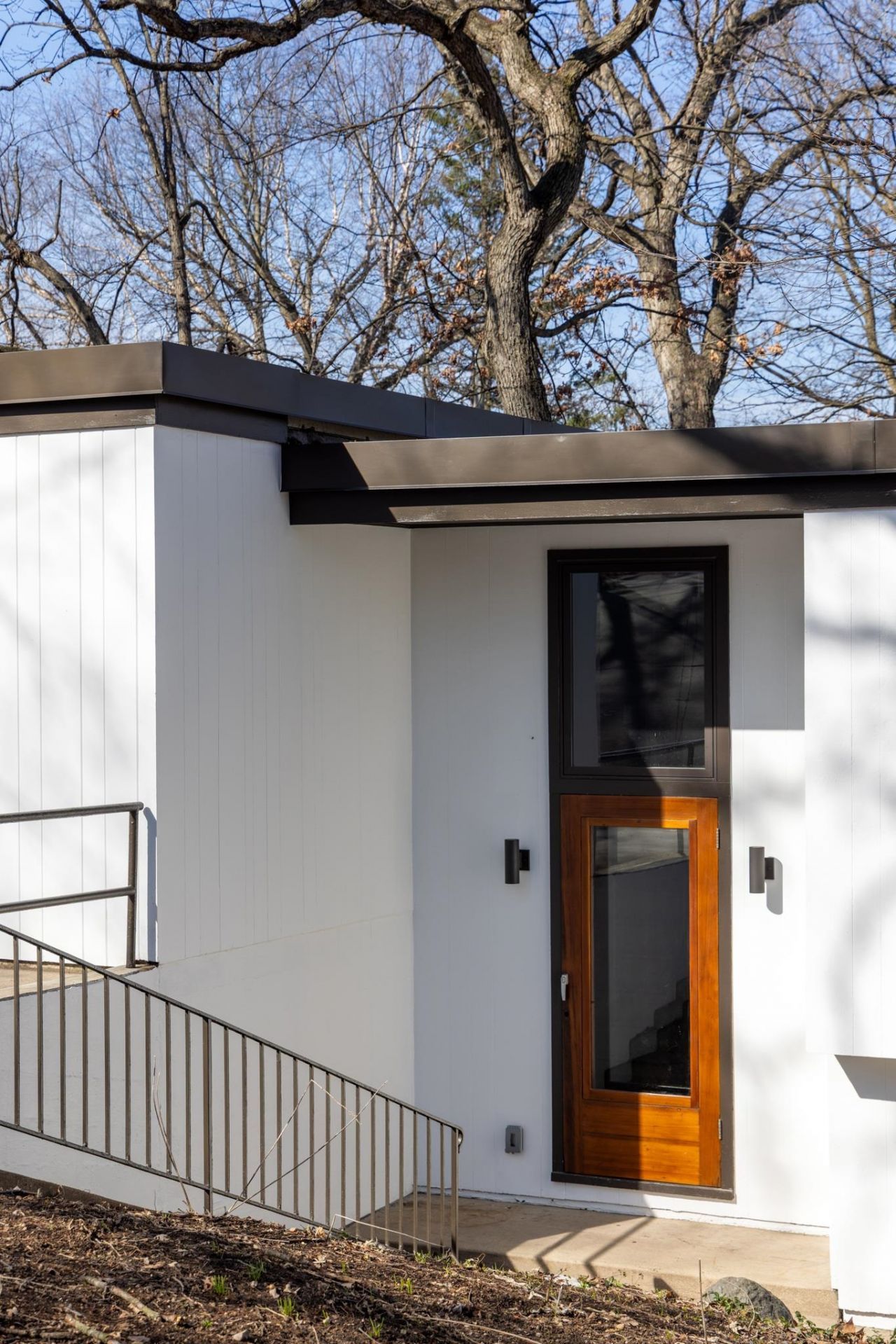 The architecture does the work. 4338 Upland Drive is a period-correct mid-century modern in Madison's Sunset Village ? original redwood paneling, terrazzo entry, sandstone brick fireplace, and windows that turn a wooded lot into a living painting. Floor-to-ceiling glass in the main living area. Corner windows in the primary bedroom that open to the canopy. Clerestory bands that catch the light and drag it across original redwood walls. The house was designed to dissolve the boundary between inside and out, and it still does. Three bedrooms, 1.5 baths, 1,700 square feet of split-level proportion that feels exactly as considered as it was when it was built. The kitchen has been refreshed with new appliances and built-in butcher-block without disturbing the bones. The powder room ? dark walls, walnut vanity, globe pendants ? is a quiet design statement. Nestled on a wooded lot just blocks from Hilldale, minutes from UW and University Hospital. Some homes are renovated this one was restore