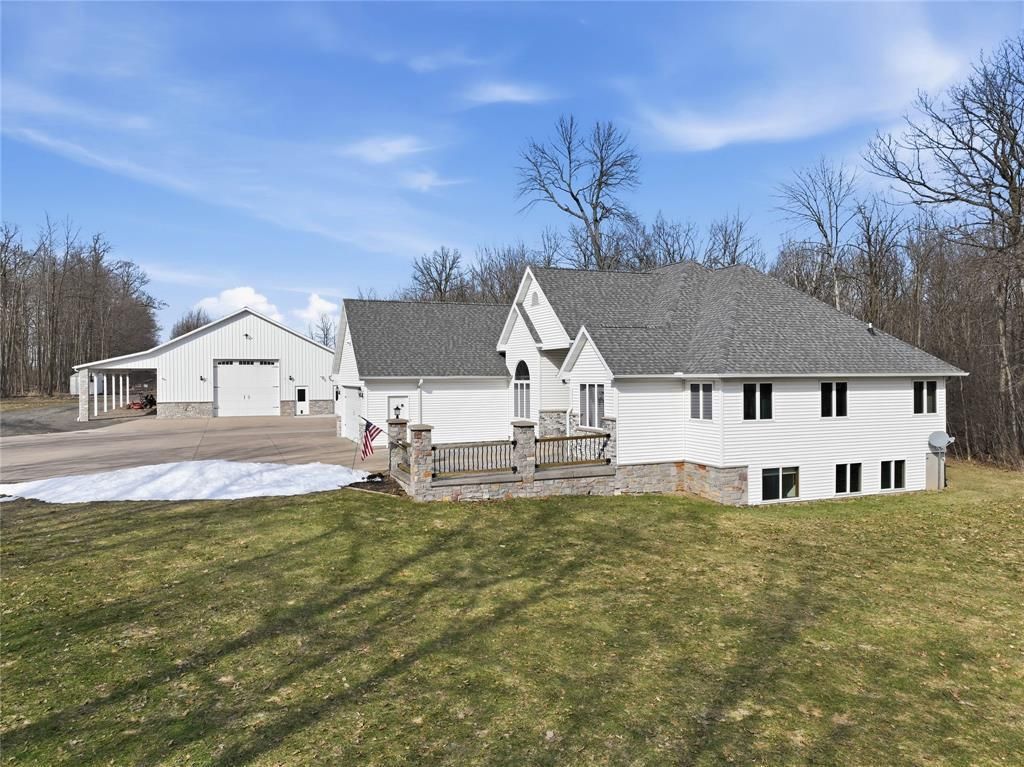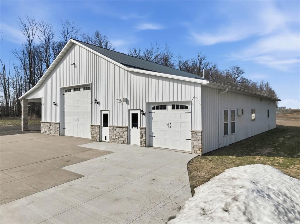 Exceptional property with versatile outbuilding! 4BR, 2BA ranch built in 2001 offering 1,800+ sq ft with 14? ceilings, main floor laundry, office, central vac, and security system. Surrounded by mature trees with stamped concrete patios (hot tub ready), maintenance-free deck, and lower level ready for future expansion. Attached 3-car heated garage plus an outstanding 36'x64' shop featuring full kitchen, bath, office/bedroom, walk-in cooler/freezer, in-floor heat (non-shop areas), 12? overhead doors, floor drain, central vac, air compressor hookups, wood stove heat in shop area, wall A/C, and security cameras. Includes 12'x64' lean-to and 12'x64' second-floor mezzanine for additional storage. Ideal for business, hobbies, or storage?this property offers exceptional flexibility and value!