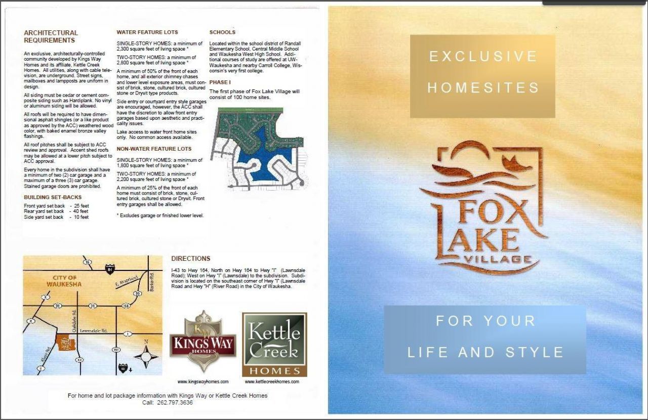 Build your dream home in Addition #3 of Fox Lake Village in the City of Waukesha. This lot features a fully exposed lower level on the water feature. Choose your own builder to live adjacent to the 200 acre Fox River Park and just a few miles to Downtown Waukesha, Waukesha West, Waukesha Memorial Hospital plus popular retailers and restaurants. The development features a 23 acre water feature and is the former site of a MBA Parade of Homes. All lots are fully improved with municipal sewer and water.